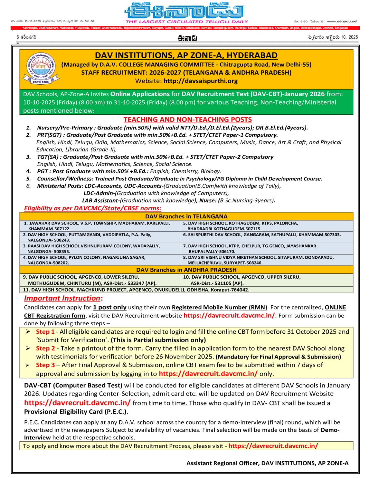 DAV HIGH SCHOOL, BOMBAY COLONY, K.T.P.S., BHADRADRI-KOTHAGUDEM, PALONCHA, TELANGANA-507115 E-Mail ID: davhsktps@gmail.com Phone: Website: www.davktps.co.in